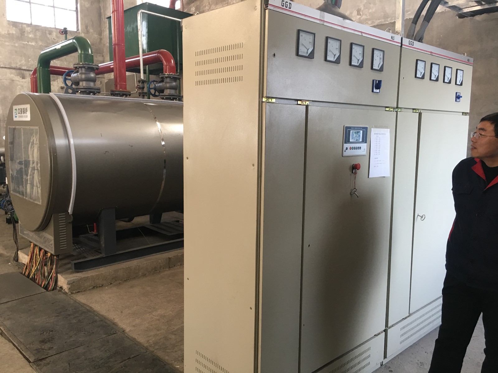 9、電熱水鍋爐采用爐體與控制柜分離方式,避免了電器元件受熱而影響供熱。機電分體化,便于安裝配線和檢修。